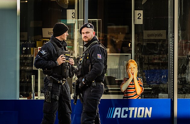Policejní zásah v obchodní zóně v Hradci Králové, kde po útoku nožem zemřely dvě ženy. (20. února 2025)