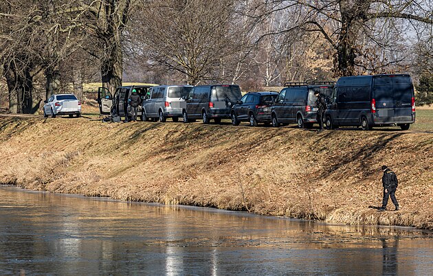 Policie prohledává břeh Labe, kde se pravděpodobně nachází místo dopadení pachatele dvojnásobné vraždy v hradeckém obchodě. (20. února 2025)
