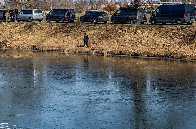 Policie prohledává břeh Labe, kde se pravděpodobně nachází místo dopadení pachatele dvojnásobné vraždy v hradeckém obchodě. (20. února 2025)