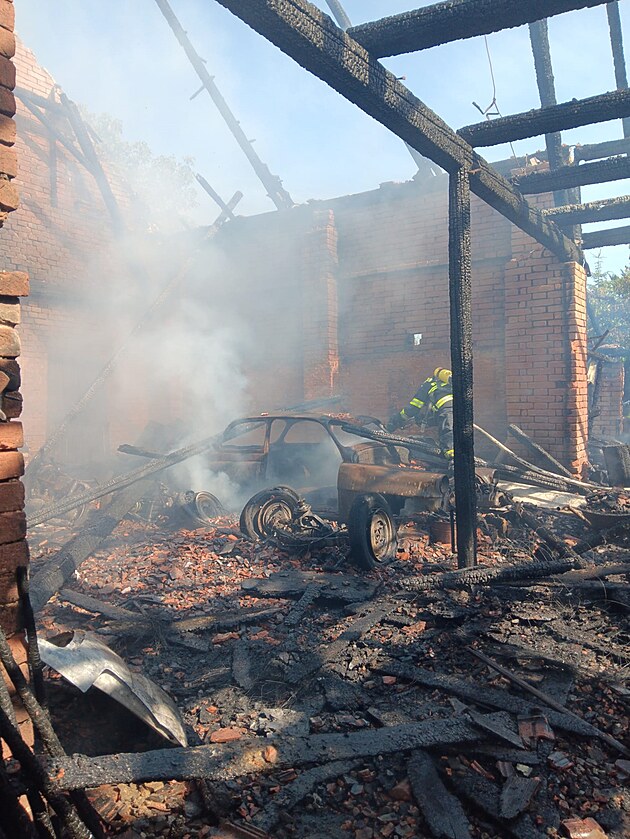 Ve stodole ve Stračově vyhořel sklad olejů. (26. června 2025)