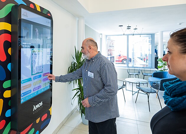 Vestibul Střeziny nabízí novou recepci, digitální nástěnku a foyer pro čekající doprovod žáků.