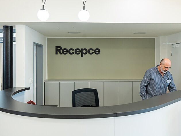 Vestibul Střeziny nabízí novou recepci, digitální nástěnku a foyer pro čekající doprovod žáků.