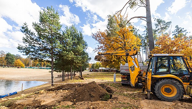 Stavba pěti nových chatek v kempu u Stříbrného rybníku v Hradci Králové (30. října 2025)