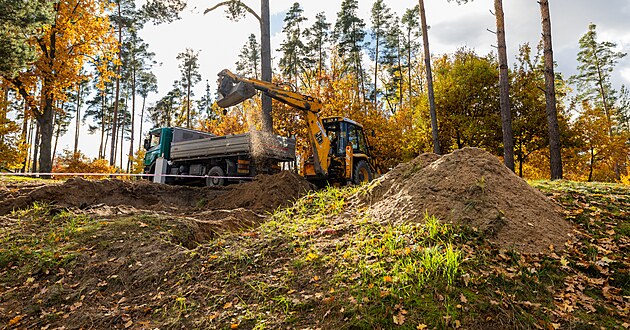 Stavba pěti nových chatek v kempu u Stříbrného rybníku v Hradci Králové (30. října 2025)