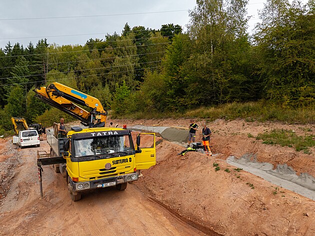 Stavba portálu pro tunel Opevnění na D11 u Zlaté Olešnice na Trutnovsku (2. září 2025)