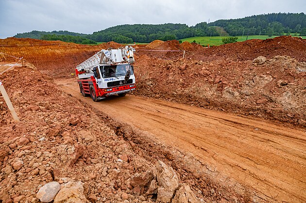 Stavbaři pracují na dálničním sjezdu D11 v Trutnově-Poříčí. (28. května 2025)