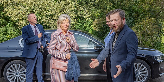 Vila Čerych v České Skalici se otvírá po rekonstrukci. Jozef Lucák a Eliška Kaplický Fuchsová vítají první dámu Evu Pavlovou. (4. října 2025)