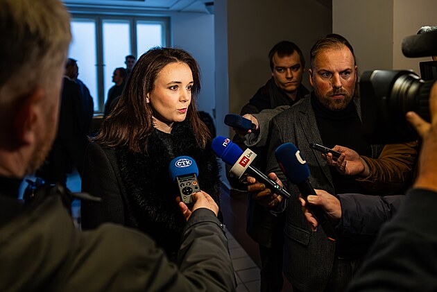 Advokátka Lucie Hořenovská u Krajského soudu v Hradci Králové, který řeší nájemnou vraždu hradeckého podnikatele. (2. prosince 2024)