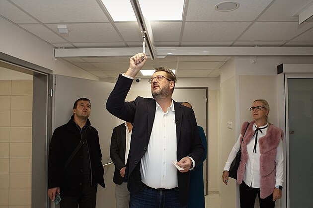 Ředitel nemocnice Michal Mrázek ukazuje závěsný systém.