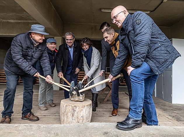 Zahájení přestavby Archeoparku ve Všestarech ručně vyrobenými kamennými kladívky. (13. prosince 2023)