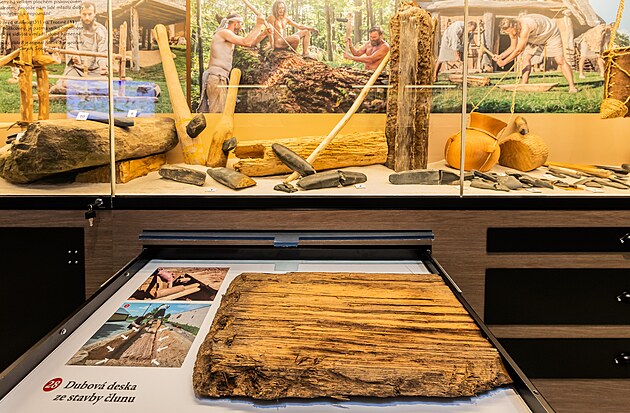 Kamenné nástroje v nové expozici ve Všestarech (2. října 2025)