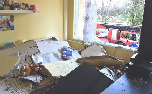 Záchranáři zveřejnili snímek zničeného dětského pokoje. Zvenčí nejsou stopy po výbuchu tolik viditelné. Exploze však vytrhla celý rám s několika okny o šířce asi čtyři metry. Z ulice jsou vidět jen záclony vlající ve větru.