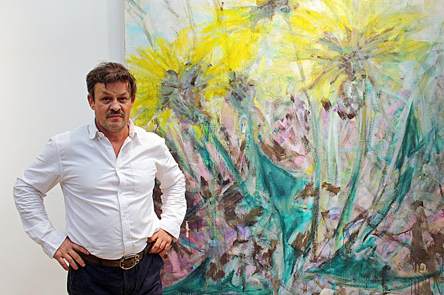 „Na zahradě si účelově pěstuju slunečnice, které potom můžu v reálném čase namalovat,“ říká Tomáš Bambušek.