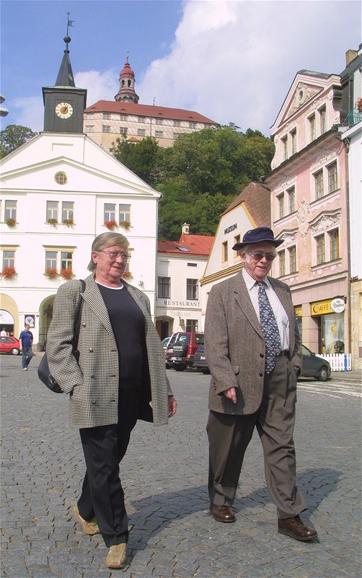 Josef Škvorecký s manželkou Zdenou Salivarovou při procházce Náchodem v roce 2004.