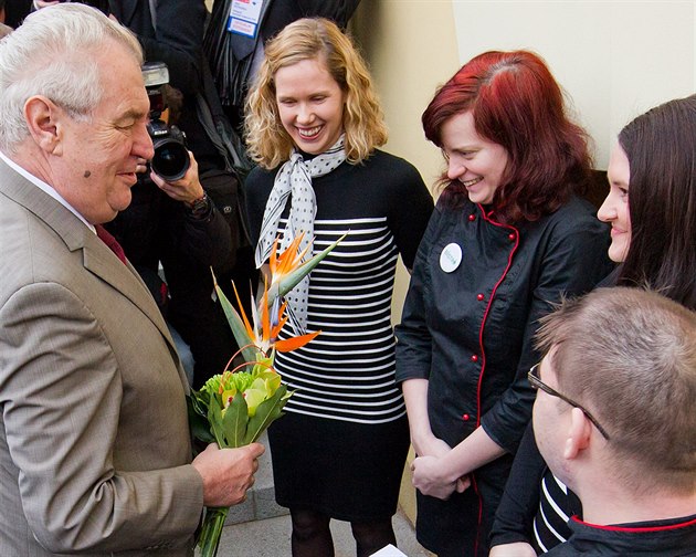 Zatímco mentálně postižení na severu Čech vytáhli na Miloše Zemana bubny a spolu se svými vychovateli ho hlasitě kritizovali za jeho předchozí výroky o vzdělávání dětí s hendikepem, které by se podle něj neměly vzdělávat společně s ostatními (více o protestu čtěte zde), ti hradečtí ho ve středu přivítali květinou.
