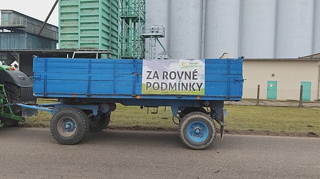 Zemědělci z Hradecka se ráno sjeli do Smiřic, odkud v koloně vyjedou protestovat do Náchoda. (27. února 2025)