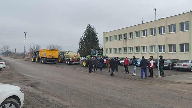 Zemědělci z Hradecka se ráno sjeli do Smiřic, odkud v koloně vyjedou protestovat do Náchoda. (27. února 2025)