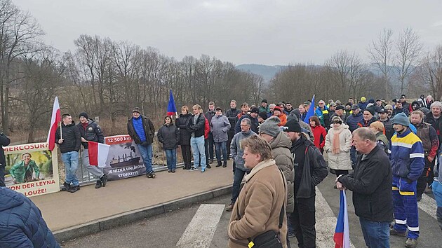„Mercosur? Z von der Leyna do louže!“ napsali protestující zemědělci na jeden transparent při demonstraci na hranici v Náchodě.