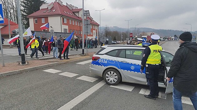 Demonstrace za rovné podmínky pro zemědělce na hranici v Náchodě (27. února 2025)