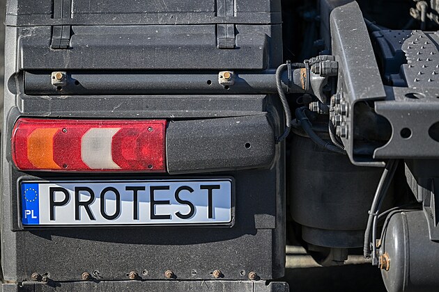 Na snímku je kamion, který se účastní protestu polských řidičů kamionů. Ti blokují polsko-ukrajinskou hranici v obci Korczowa na jihovýchodě Polska. (7. listopadu 2023)