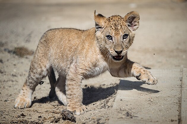 Čtyři mláďata lvů berberských se narodila v dvorské zoo v lednu, snímek je z dubna 2025.