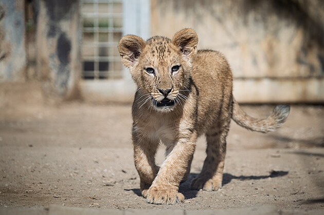 Čtyři mláďata lvů berberských se narodila v dvorské zoo v lednu, snímek je z dubna 2025.