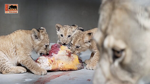 Krmení čtyřčat lvů berberských