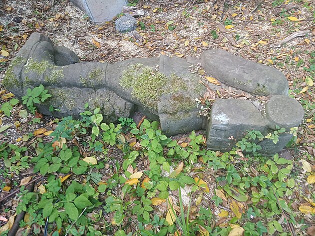 Torzo sochy leželo v odlehlém místě u chat na Ostrovech. (2. 10. 2021)