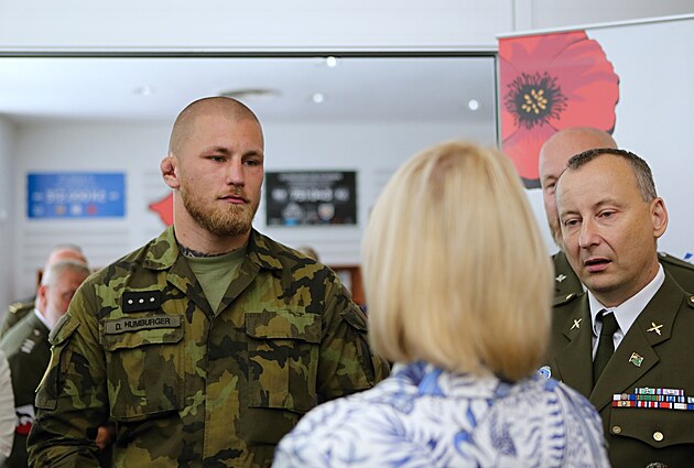 Armáda má nové náborové středisko v centru Liberce. Slavnostního otevření se zúčastnila i ministryně obrany Jana Černochová. Na snímku s Dominikem Humburgerem. (17. června 2025)