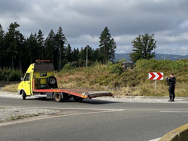 Auto skončilo uprostřed kruhového objezdu. (17. srpna 2025)