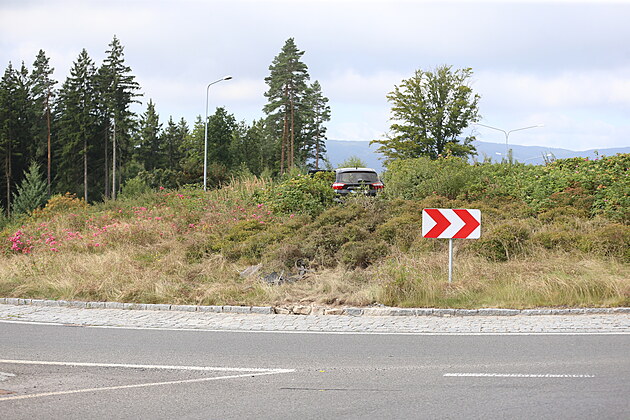 Auto skončilo uprostřed kruhového objezdu. (17. srpna 2025)