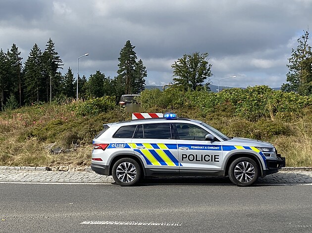 Auto skončilo uprostřed kruhového objezdu. (17. srpna 2025)