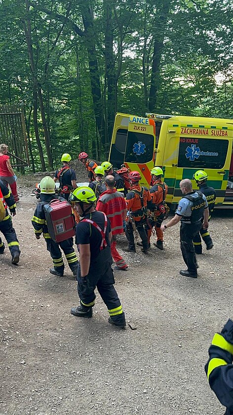 Hasiči zachraňovali návštěvnici Bezdězu, která se zřítila ze srázu pod hradem. (9. srpna 2025)