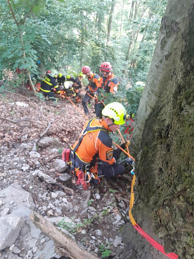 Hasiči zachraňovali návštěvnici Bezdězu, která se zřítila ze srázu pod hradem. (9. srpna 2025)