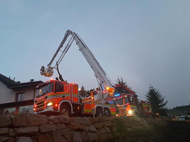 Bouře vyvrátila strom, který spadl na dům. (28. května 2025)