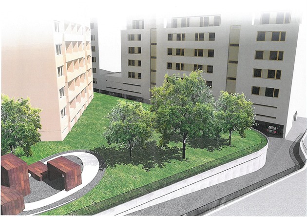 Parkoviště bude nakonec schované pod travnatou střechou, která plynule naváže na zeleň v okolí paneláku. A nájezdovou rampu nahradí autovýtah. „Ten bude umístěný ve štítu nové stavby s vjezdem ze Slavíčkovy ulice. Sloužit má pouze pro devět parkovacích míst,“ doplnil Otta.
