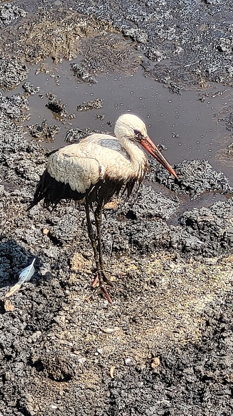 Čáp uvázl v odpadní jímce. (12. června 2025)