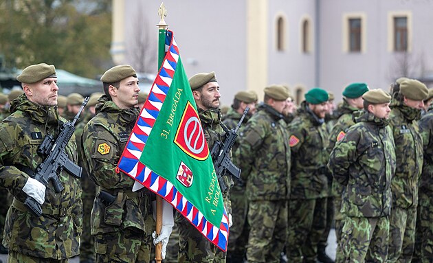 Liberecký pluk při nástupu představil svůj nový znak. (11. listopadu 2024)
