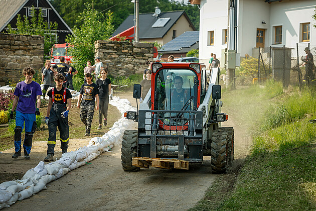 Dalešice v Libereckém kraji bojují s bahenní kalamitou. (3. června 2025)