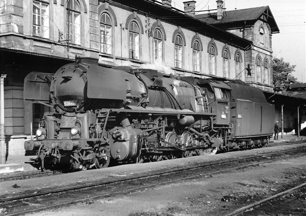 Lokomotiva 556.0497 ve stanici Česká Lípa město, 1978, foto: Karel Šlais GPS: 50.6791236N, 14.5396131E