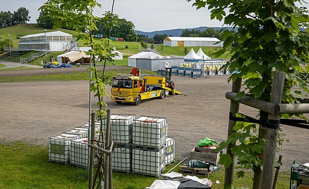 Stany, pódia, ale i mobilní toalety. Vesecký areál v Liberci se proměňuje v dějiště festivalu Benátská! s Impulsem. (23. července 2025)