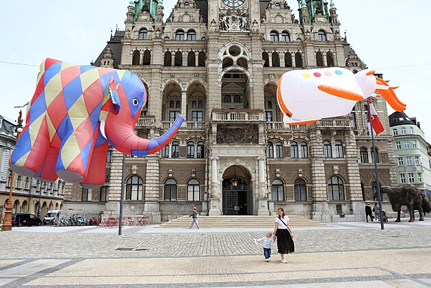 Ulice Liberce obsadili létající sloni. (10. června 2025)