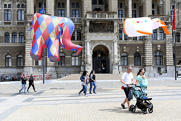 Ulice Liberce obsadili létající sloni. (10. června 2025)