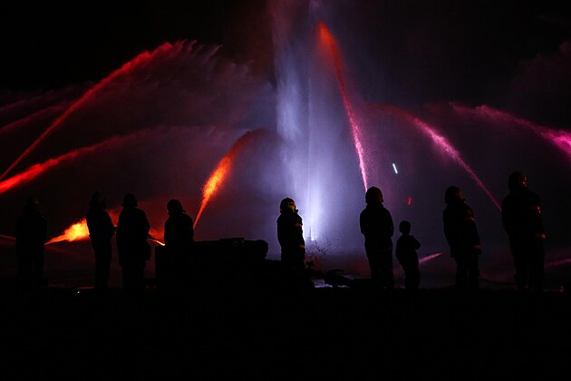 Hasičská fontána v Novém Oldřichově (16. srpna 2025)