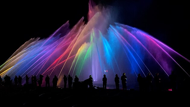 Hasiči vytvořili pomocí vody, světel a hudby velkolepou podívanou