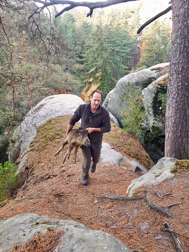 Do pasti na skalní věži se dostala rodinka divokých prasat.
