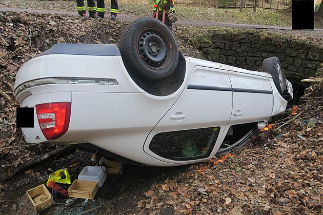 Řidič po několikakilometrové honičce skončil s autem na střeše.