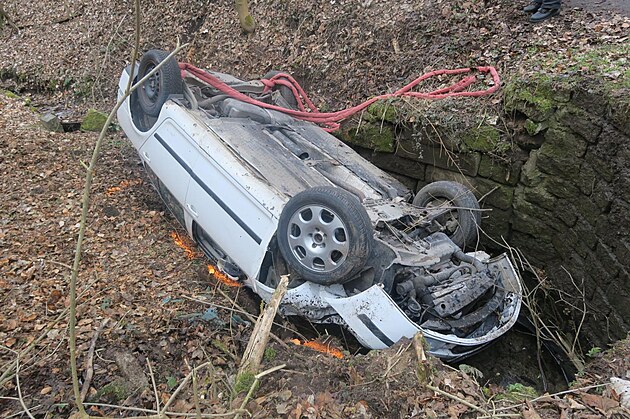 Řidič po několikakilometrové honičce skončil s autem na střeše.