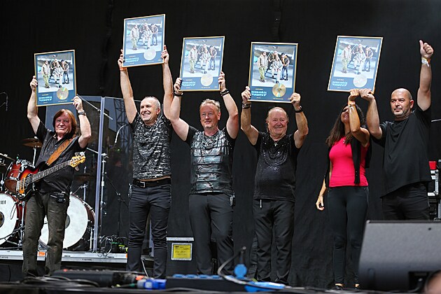 Petr Janda (třetí zprava) a Olympic na festivalu Benátská! s Impulsem (24. července 2025)