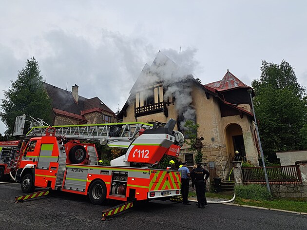 V Jablonci hořela vila. (22. května 2025)